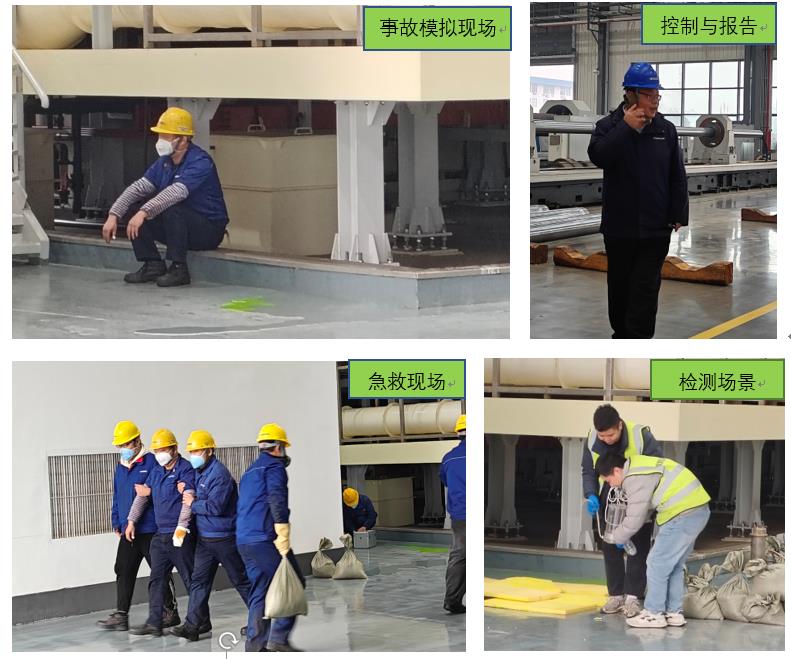 特種缸車間作為本次事故模擬地點、公司根據(jù)應(yīng)急救援和措施展開系列現(xiàn)場搶險與報告、及時聯(lián)系高新區(qū)事故接警、做好企業(yè)警戒及響應(yīng)和搶險行動、配合消防組織和檢測機(jī)構(gòu)展開事故處置,并完成應(yīng)急和善后行動。